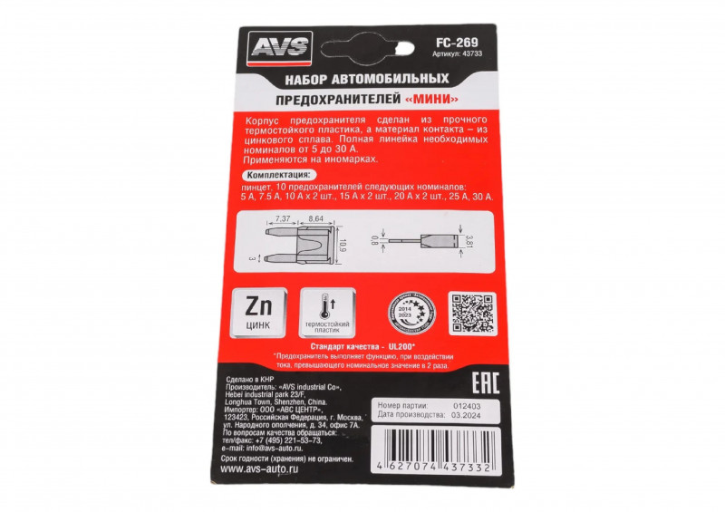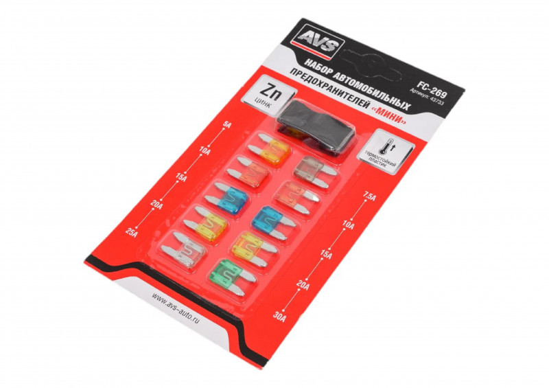 Наборы AVS FC-269 позволят Вам без проблем заменить сгоревший предохранитель в автомобиле. Корпус изделия выполнен из прозрачного пластика, а элемент — из цинкового сплава. Применяются на иномарках.