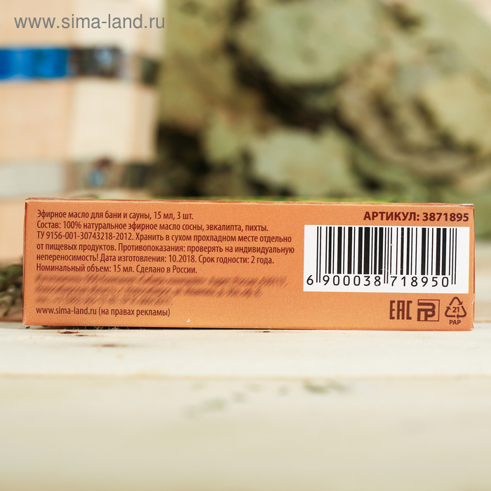 Набор эфирных масел "Хозяину бани" пихта,сосна,эвкалипт 15мл