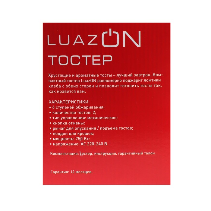 Тостер LT-03 750 Вт 6 режимов прожарки 2 слота белый