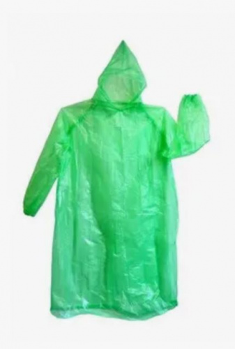 Дождевик ПНД с капюшоном,рукавами и застежками зеленый 70х118