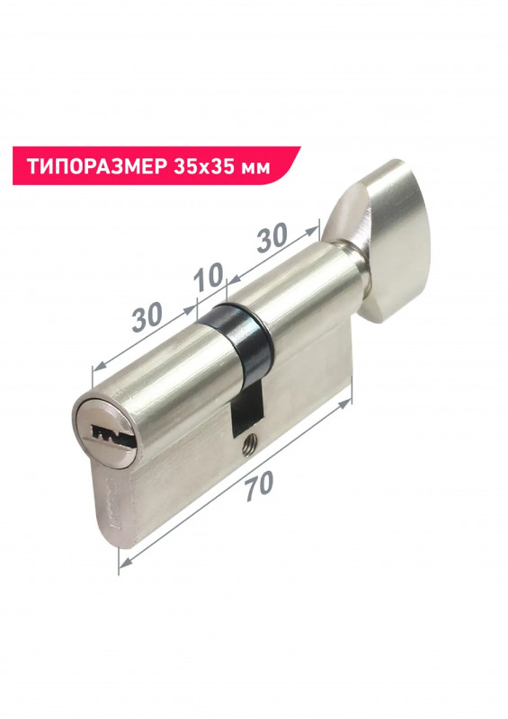 Механизм цилиндровый для врезных замков. Европрофиль. Перфоключ. Материал цилиндра - сталь, цинковый сплав. Ключ-вертушка. Выступающий на 30 градусов из плоскости механизма кулачок защищает цилиндр от выбивания из двери.