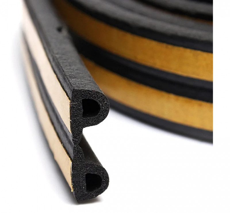 Уплотнитель для окон и дверей WALLS Р-профиль резиновый на клейкой основе черный 10м