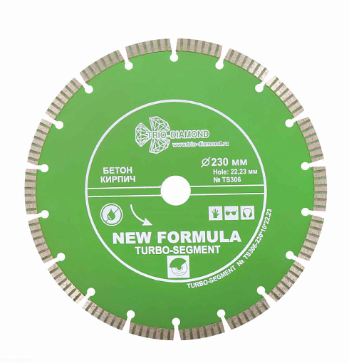 Назначение: бетон, бордюрный камень, кирпич, тротуарная плитка, твердый песчаник, гранит. Особенности: диски сочетают в себе лучшие качества дисков Turbo (скорость реза ) и Segment (повышенная износостойкость). Технология производства: Холодное прессование