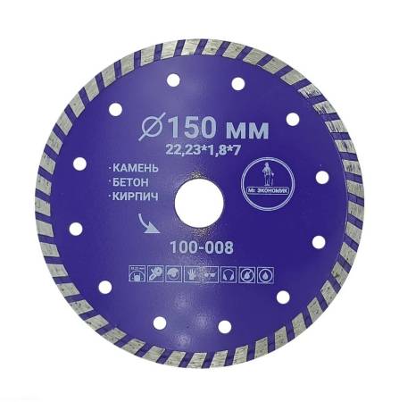 Характеристики товара Диск алмазный турбо отрезной 150*22,23мм Mr. ЭКОНОМИК, 100-008