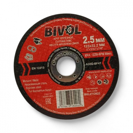 Круг отрезной по металлу Т41-125х2.5х22,2мм BIVOL